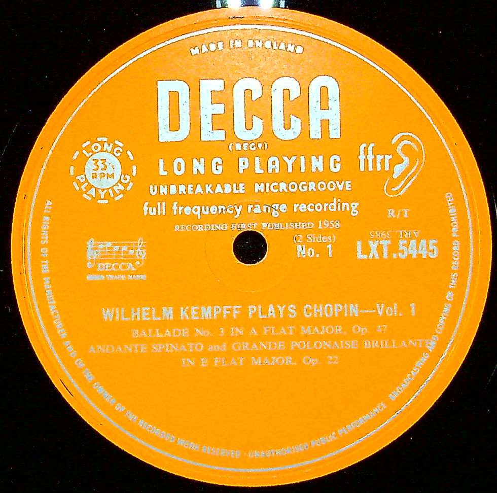商品コード:1364-041[DECCA] W.ケンプ(pf) / ショパン:Pf作品集-1/バラード第3番, 華麗なる大ポロネーズ 他