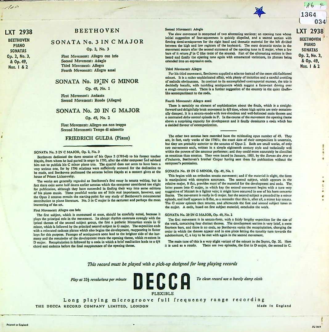 商品コード:1364-034p[DECCA] F.グルダ(pf) / ベートーヴェン:Pfソナタ集-4/ 3番, 19番, 20番