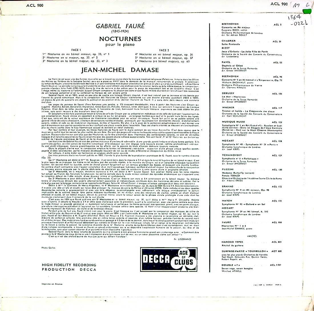 商品コード:1364-022b[DECCA] J.M.ダマーズ(pf) / フォーレ:夜想曲集1 / 1~6番Op.33, 36, 37, 63