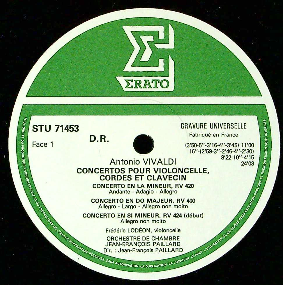 商品コード:1365-063b[ERATO] F.ロデオン(vc)/ ヴィヴァルディ:Vc協奏曲集(5曲)/RV.420, RV.400, RV.424, Rv.413, Rv.401