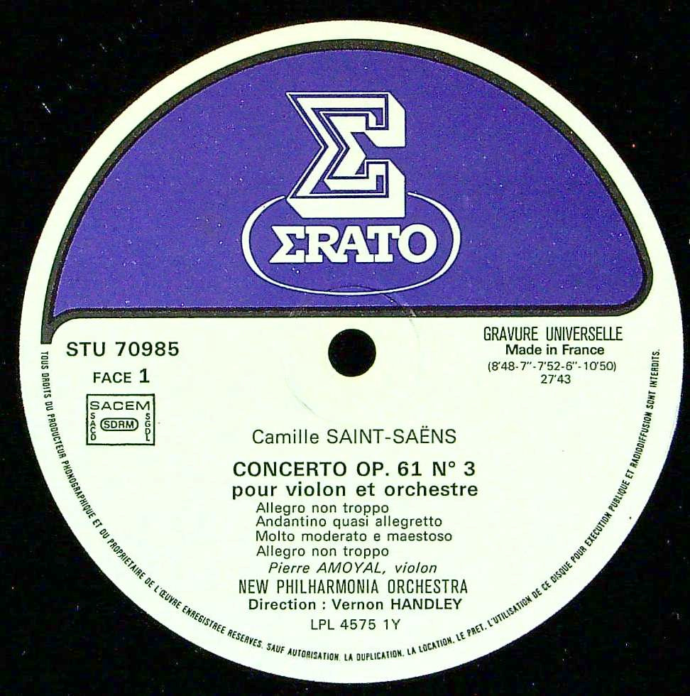 商品コード:1365-059b[ERATO] P.アモイヤル(vn)/ サン・サーンス:Vn協奏曲3番, 序奏とロンド・カプリッチョーソ, ハバネラ