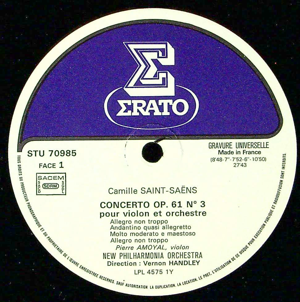 商品コード:1365-059[ERATO] P.アモイヤル(vn)/ サン・サーンス:Vn協奏曲3番, 序奏とロンド・カプリッチョーソ, ハバネラ