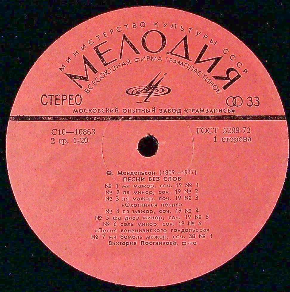 商品コード:1365-033p[MELODIYA] V.ポストニコワ(pf) / メンデルスゾーン:無言歌集(全48曲)
