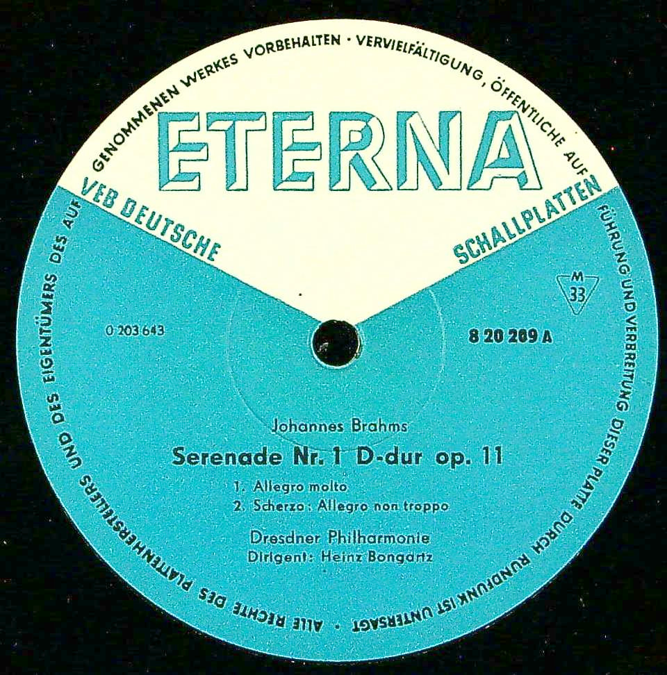 商品コード:REG-4043n[東独ETERNA] H.ボンガルツ/ ブラームス:セレナーデ1番