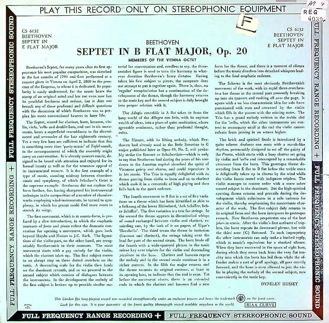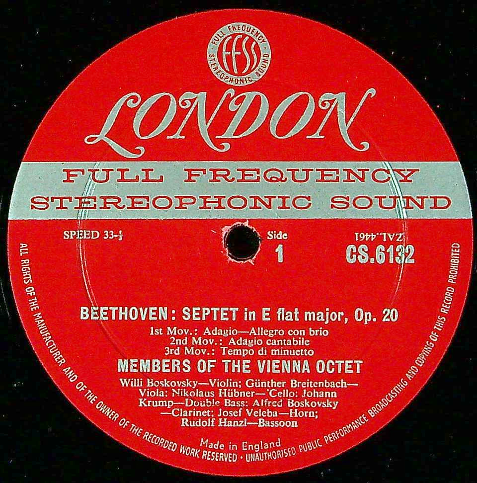 商品コード:REG-4039[米LONDON] ウィーン八重奏団のメンバー/ ベートーヴェン:七重奏曲Op.20