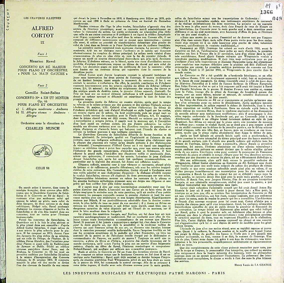 商品コード:1366-049[VSM] A.コルトー(pf) / ラヴェル:左手のためのPf協奏曲, サン・サーンス:Pf協奏曲4番