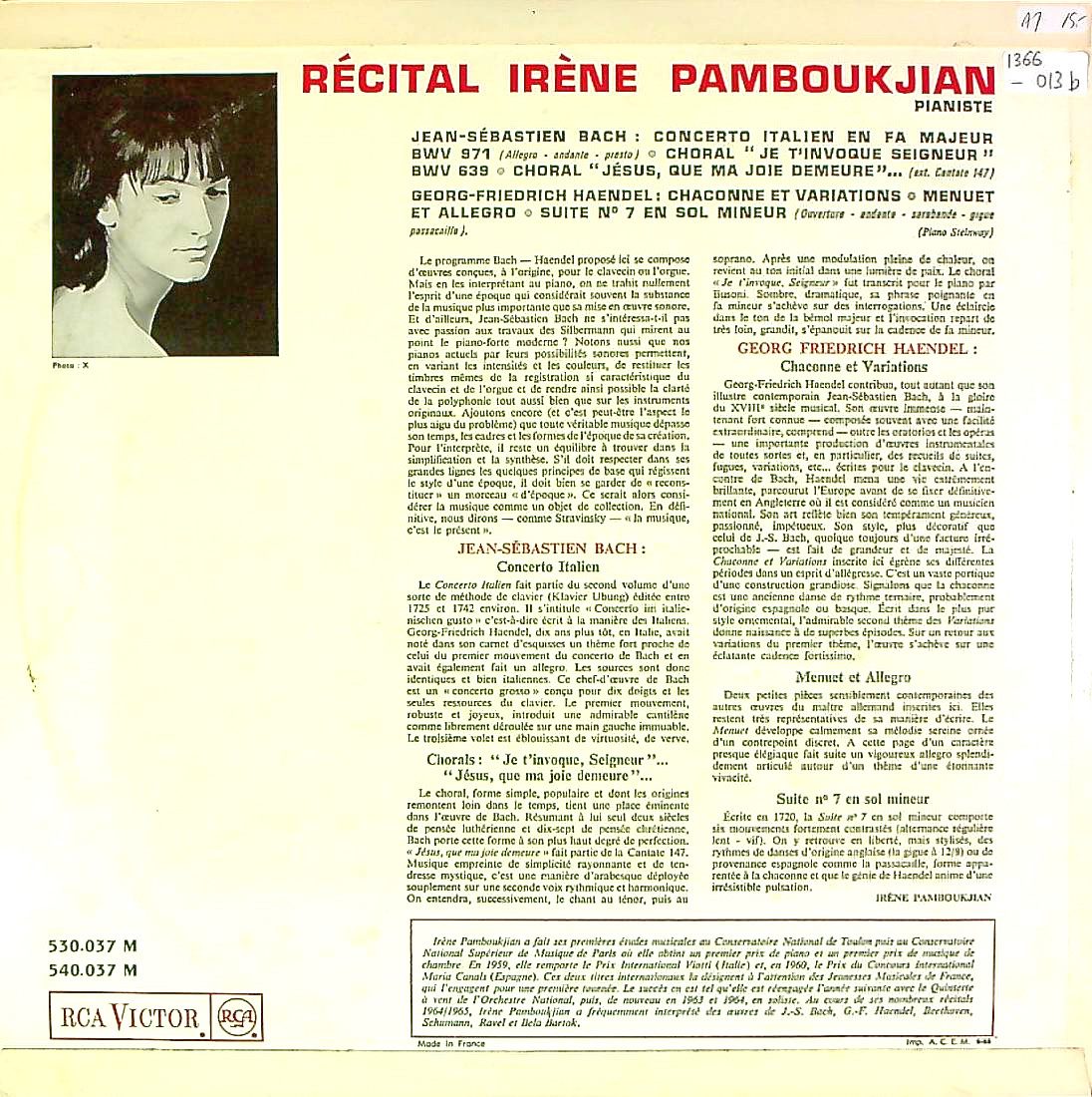 商品コード:1366-013b[RCA] I.パンボクジャン(pf) / バッハ:イタリア協奏曲BWV.971, コラールBWV.639 他, ヘンデル
