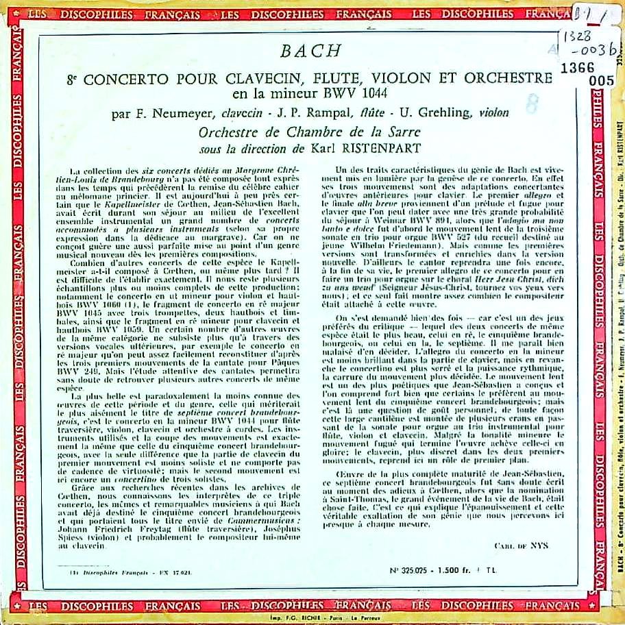 商品コード:1366-005[DF] K.リステンパルト/ バッハ:合奏協奏曲