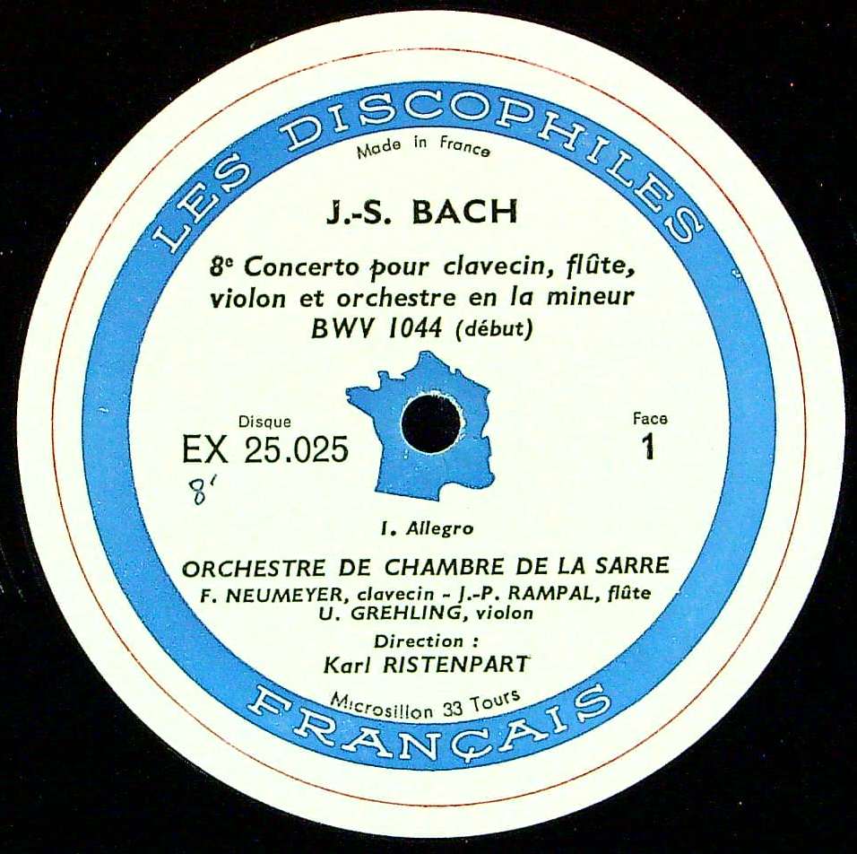 商品詳細:初出は12"のDF 165。Vn・Ob協奏曲B.1060/合奏協奏曲B.1065bisとのカップリングとなる。高価かつレアな1枚。これは2曲のうちの1曲、B.1044のみを10"両面を使ってカッティングし直したもので、再発ではあるが、'50年代フラット重量プレス。しかも初出の12"より余裕のある溝の使い方で、音質差は同等と思われる。DFでは先に12"を発売し、後に廉価盤として、こうした10"の単曲発売が多く行われた。1950年代当時、どの家庭にも12"に対応した再生装置があったわけではない。欧州では先に10"までの小型の再生装置が普及していたからである。当時DFのベストメンバーを集めた合奏協奏曲には、リステンパルトの意志がはっきりと反映され、ソロは当然だが、オケがシンプルにして様式美あふれた名演!