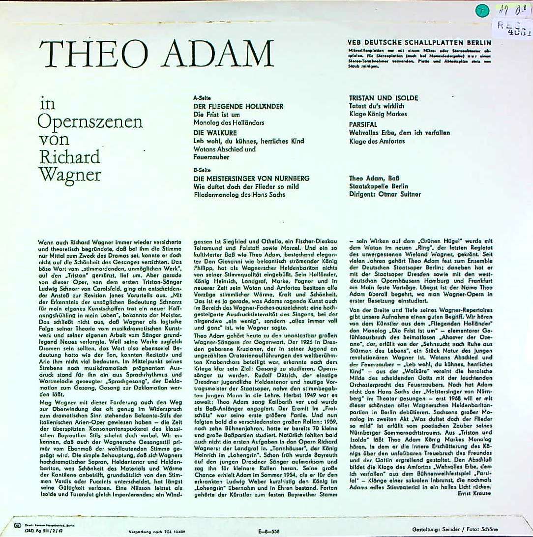 商品コード:REG-4061n[東独ETERNA] T.アダム(t) / 「テオ・アダム ワーグナーのオペラシーン」さまよえるオランダ人, ワルキューレ 他