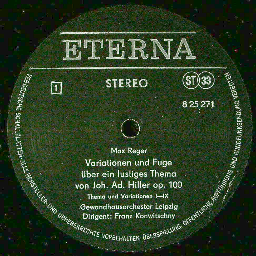 商品コード:REG-4058n[東独ETERNA] F.コンヴィチュニー/ レーガー:ヒラーの主題による変奏曲Op.100