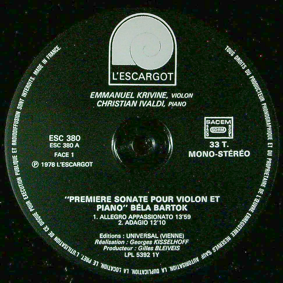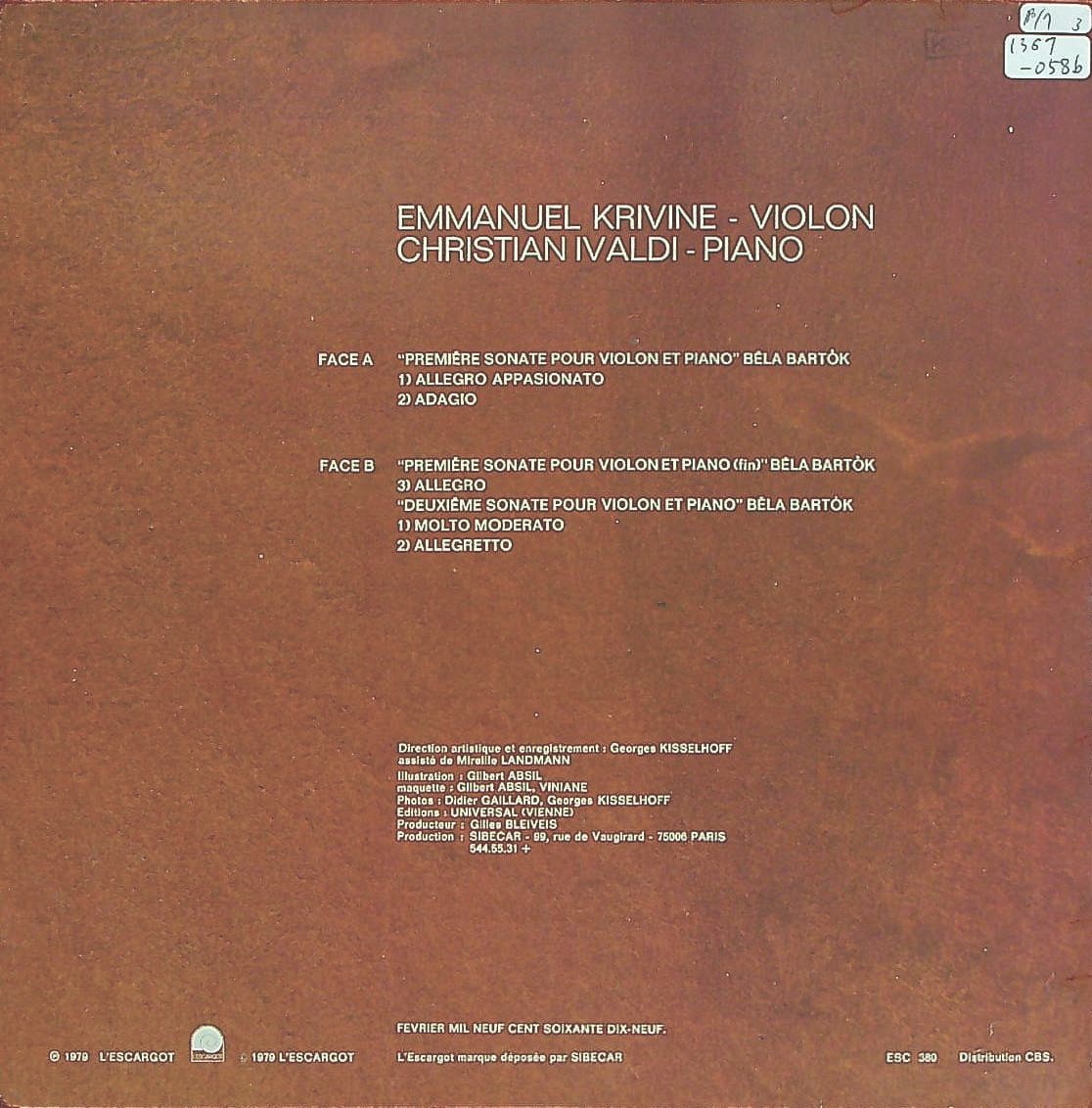 商品コード:1367-058b[L'ESCARGOT] E.クリヴィーヌ(vn)/ バルトーク:Vnソナタ1番, Vnソナタ2番