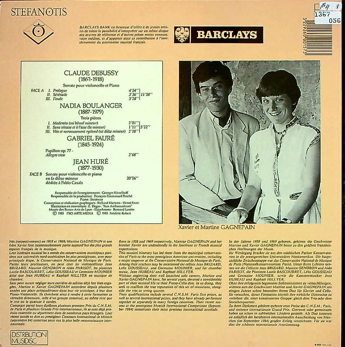 商品コード:1367-056[STEFANOTIS] X.ガニュパン(vc)/ Vc曲集/ドビュッシー:Vcソナタ, N.ブーランジェ:3つの小品, フォーレ:蝶々Op.77 , ユレ:Vcソナタ1番