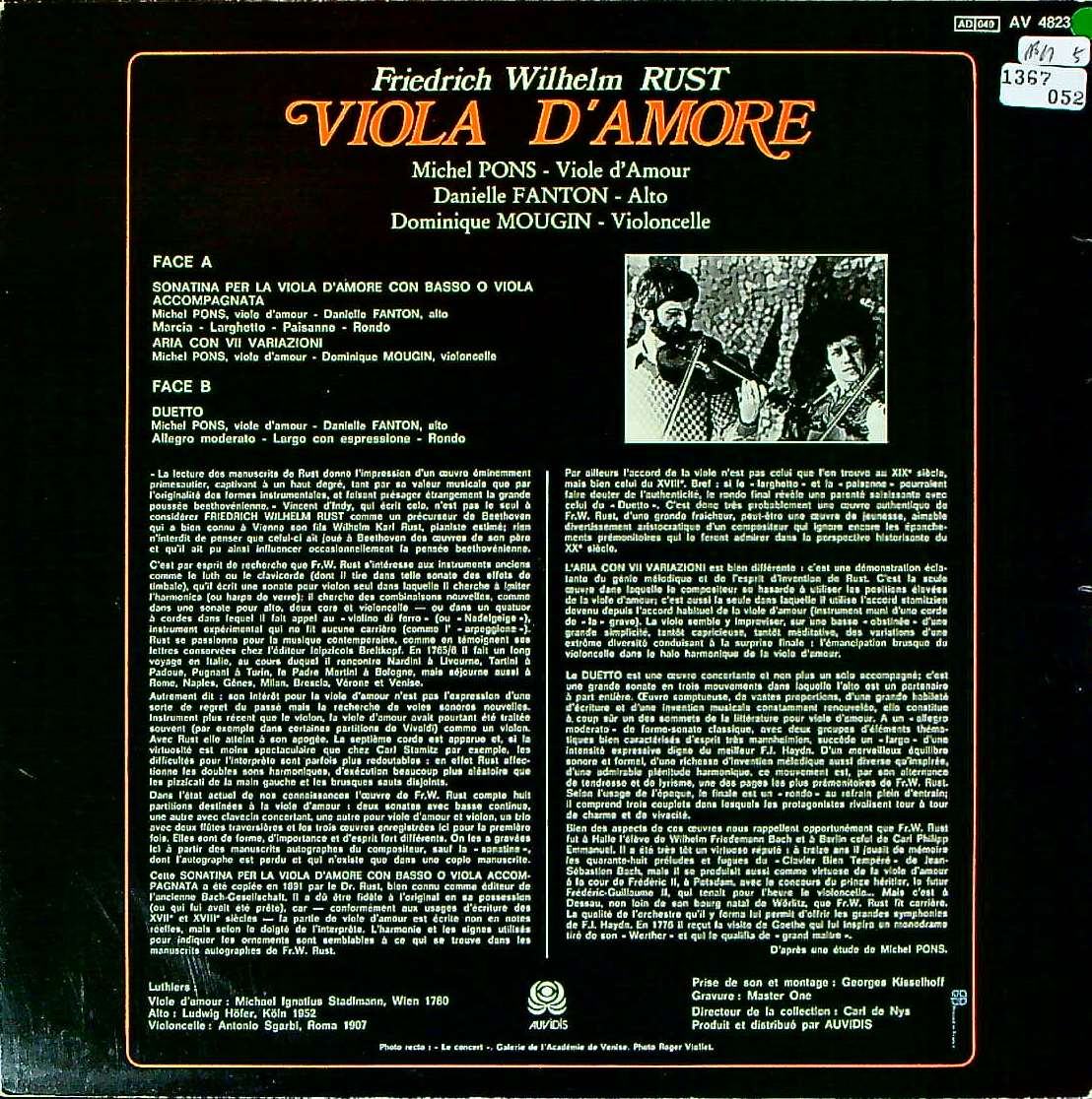 商品コード:1367-052[AUVIDIS] M.ポン(ヴィオラ・ダモーレ) 他/ ルスト:ソナチネ, アリアと7つの変奏 , ヴィオラ・ダモーレとヴィオラのための2重奏曲