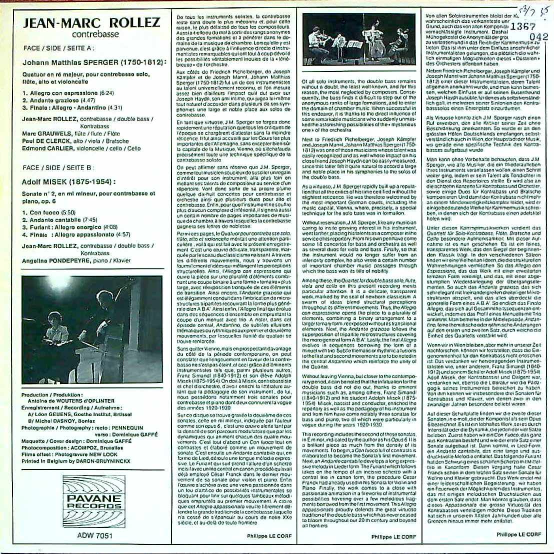 商品コード:1367-042[PAVANE] J・M.ロレ(Cb) 他/ シュペルガー:Cb四重奏, ミシェク:Cbソナタ第2番Op.6