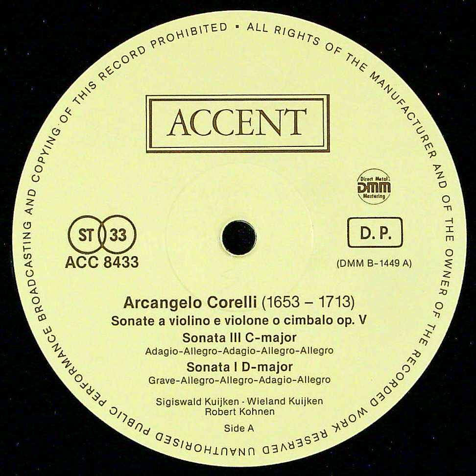 商品コード:1367-039b[ACCENT] クイケン兄弟 他/ コレッリ:VnソナタOp.5-1, 3, 6, 11, 12「ラ・フォリア」