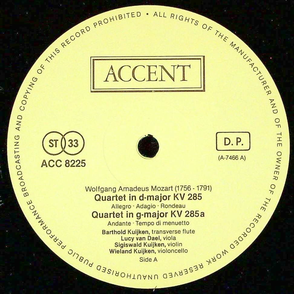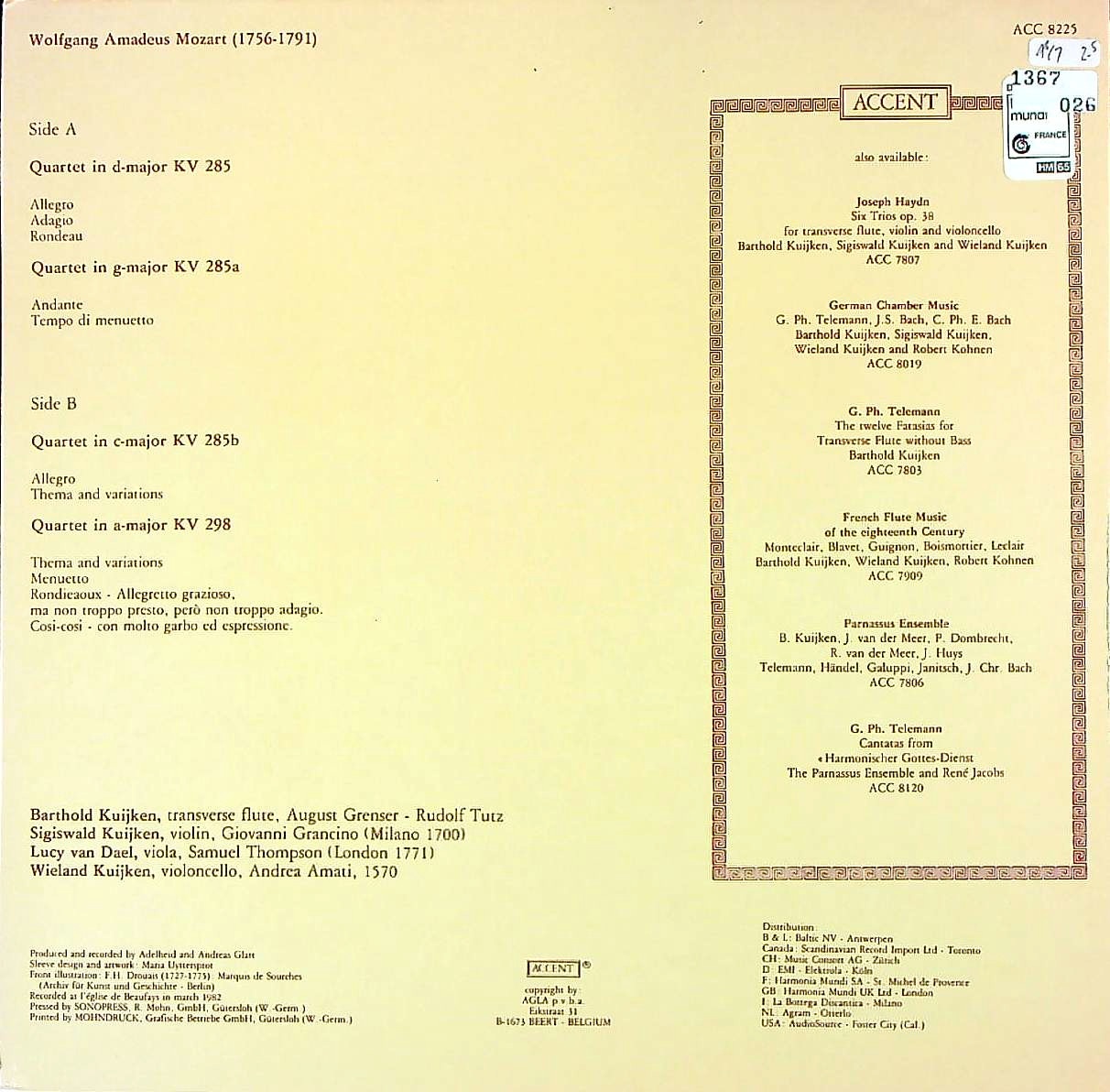 商品コード:1367-026[ACCENT] クイケン三兄弟 他/ モーツァルト:Fl四重奏曲(全4曲) [長岡鉄男 外盤A級No.101]