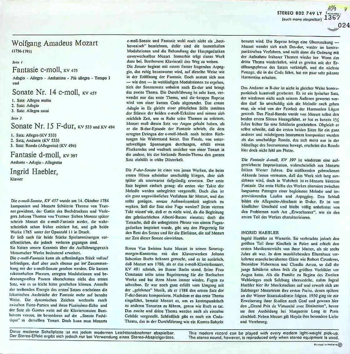 商品コード:1367-024n[PHILIPS] I.ヘブラー(pf) / モーツァルト:幻想曲K.475, K.397, Pfソナタ14番K.457, 15番K.533/494