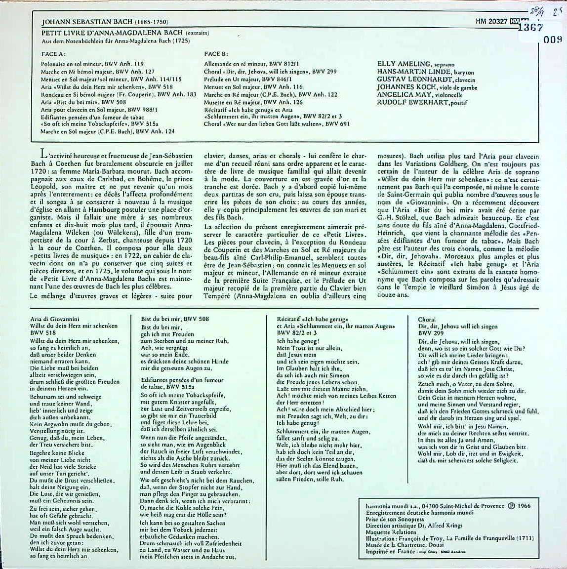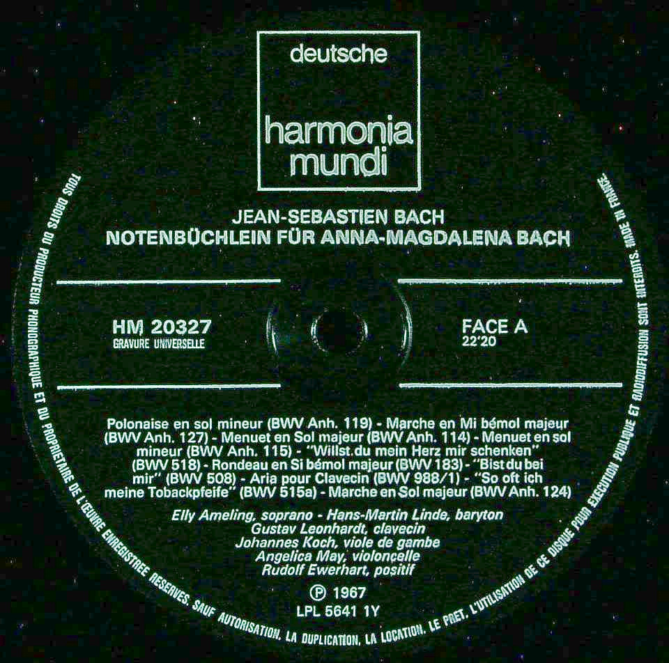 商品コード:1367-009[Harmonia Mundi] E.アーメリング(s) H.M.リンデ(br) 他/ バッハ:アンナ・マクダレーナ・バッハの音楽帳~抜粋19曲