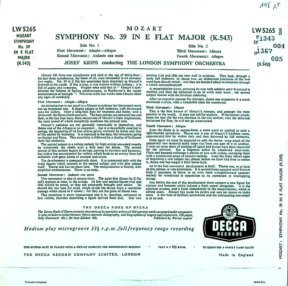 商品コード:1367-005[DECCA] J.クリップス/ モーツァルト:交響曲39番