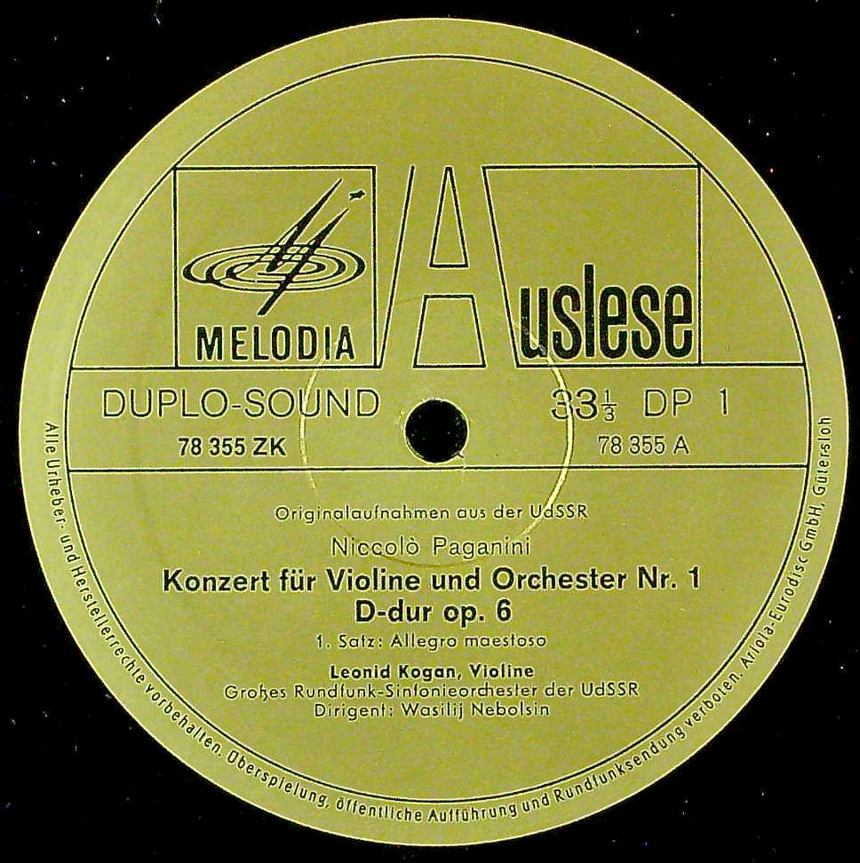 商品コード:REG-4076n[独AUSLESE] L.コーガン(vn)/ パガニーニ:Vn協奏曲1番