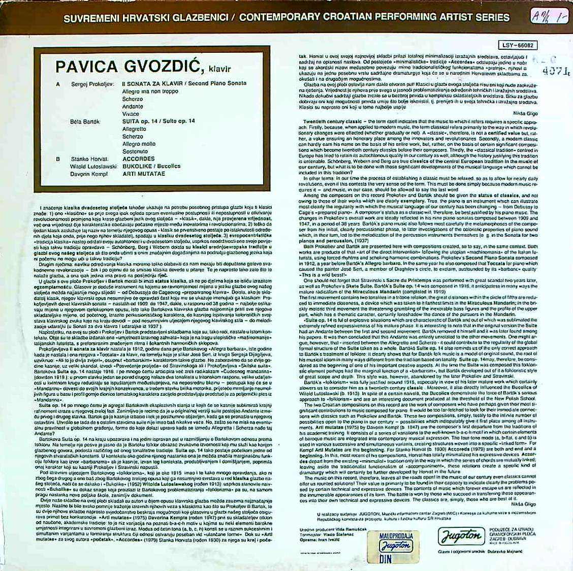 商品コード:REG-4071t[ユーゴスラビアYUGOTON] P.グヴォズディッチ(pf) / プロコフィエフ:Pfソナタ2番, バルトーク, ホルヴァト, ルトスワフスキ:, ケンプ