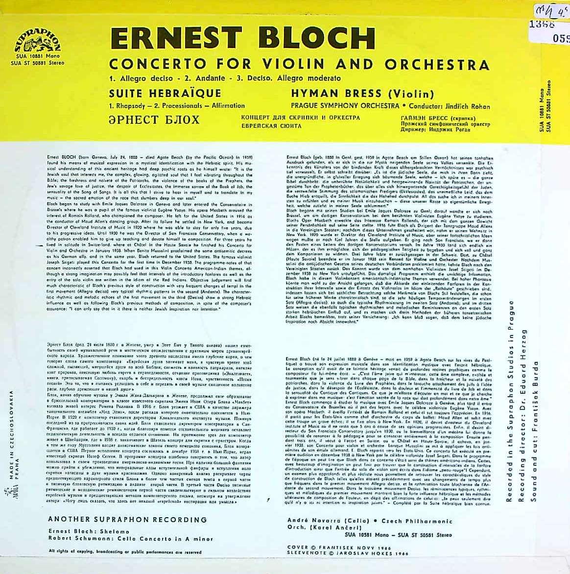 商品コード:1368-059[SUPRAPHON] H.ブレス(vn)/ ブロッホ:Vn協奏曲, ヘブライ組曲