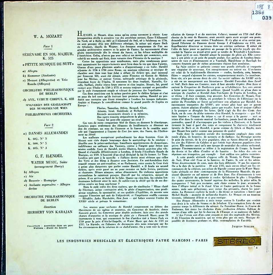 商品コード:1368-039[COLUMBIA] H.v.カラヤン/ モーツァルト:アイネ・クライネK.525, 他, ヘンデル(ハーティ編):水上の音楽