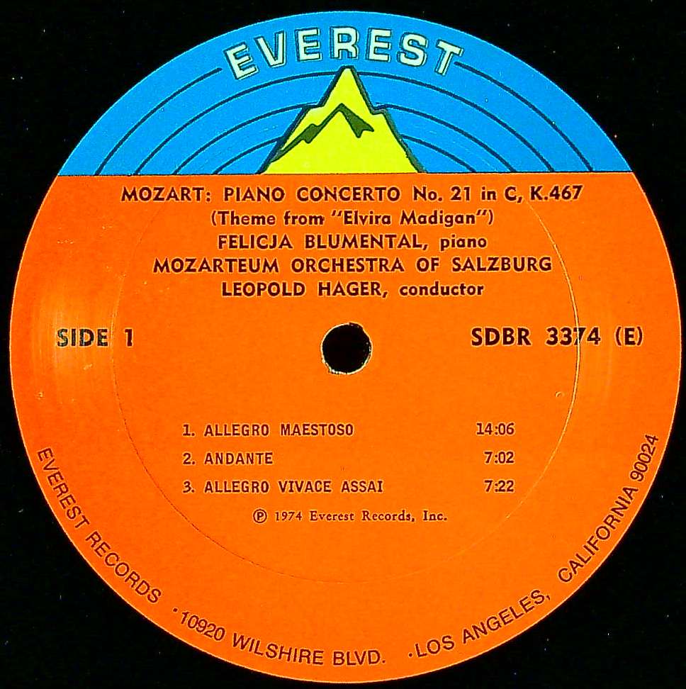 商品コード:1368-019[EVEREST] F.ブルメンタール(pf)/ モーツァルト:Pf協奏曲21番K.467, Pf協奏曲23番K.488