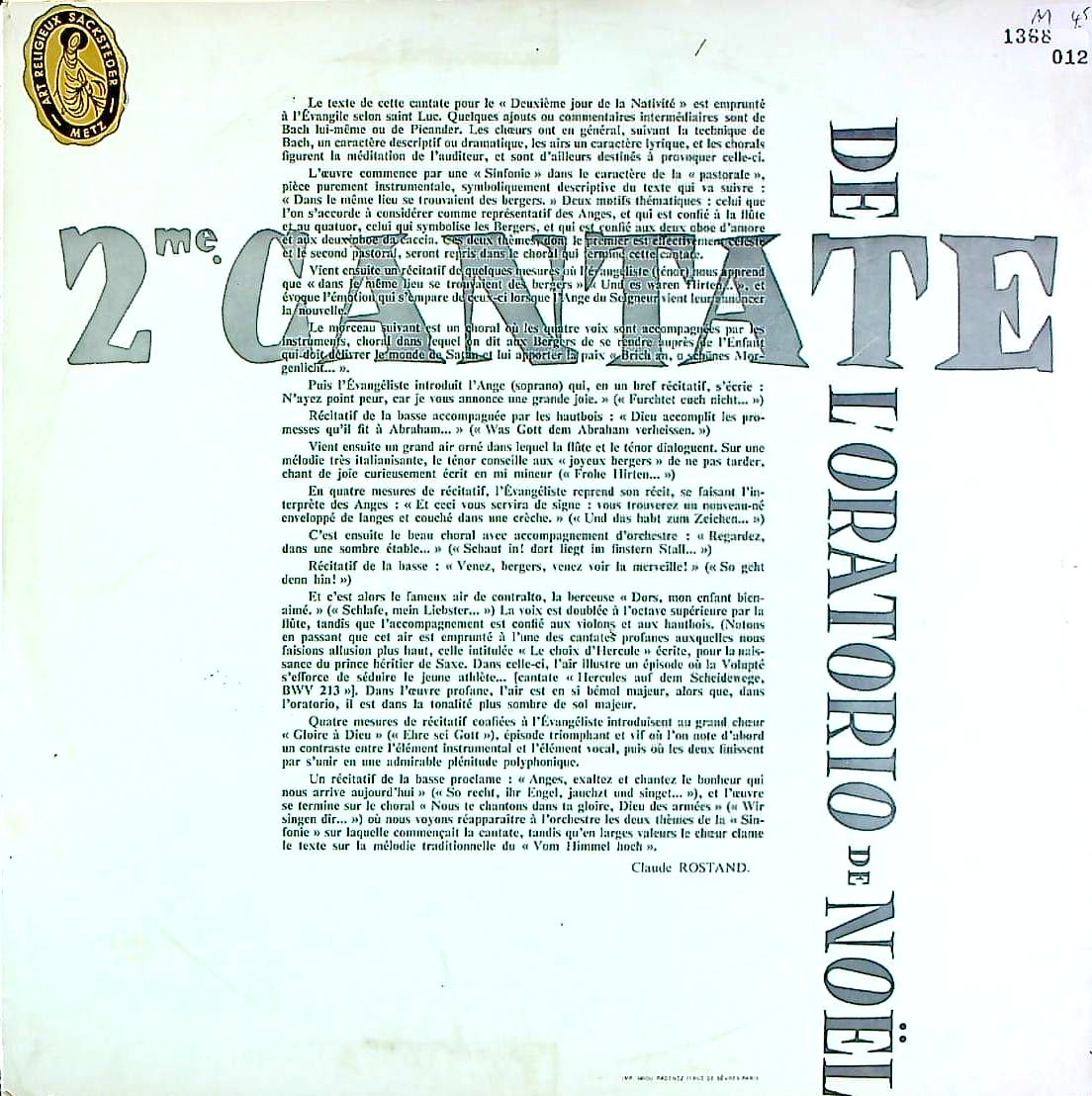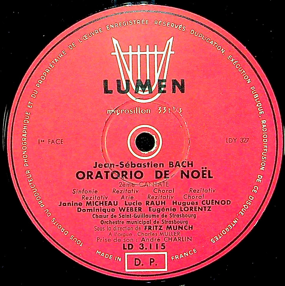 商品コード:1368-012[LUMEN] F.ミュンシュ/ バッハ:クリスマス・オラトリオ~第2部 降誕節第2祝日用(14曲)