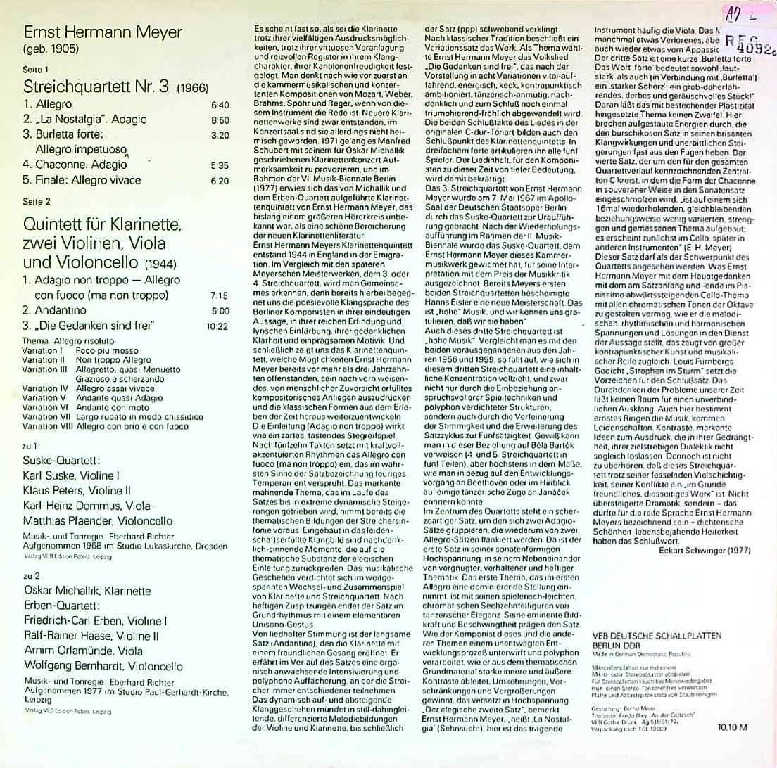 商品コード:REG-4092t[東独NOVA] ズスケQt./O.ミヒャリク(cl)/ マイア:SQ3番, Cl五重奏曲
