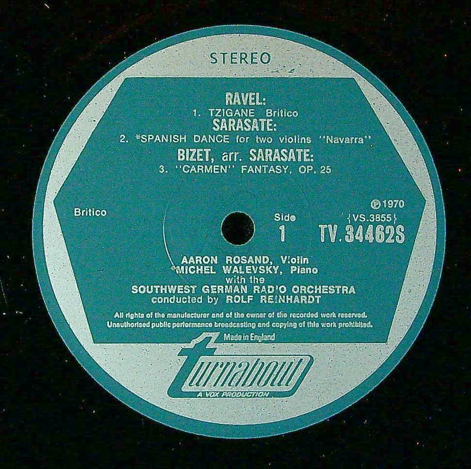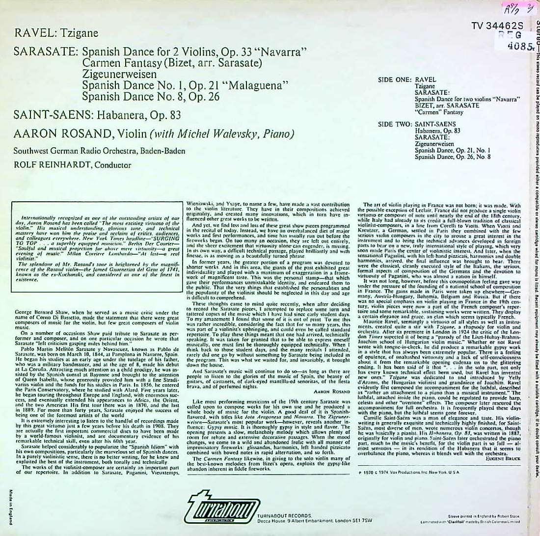 商品コード:REG-4085t[英TURNABOUT] A.ロサンド(vn)/ ラヴェル:ツィガーヌ, サラサーテ:ナバラ 他