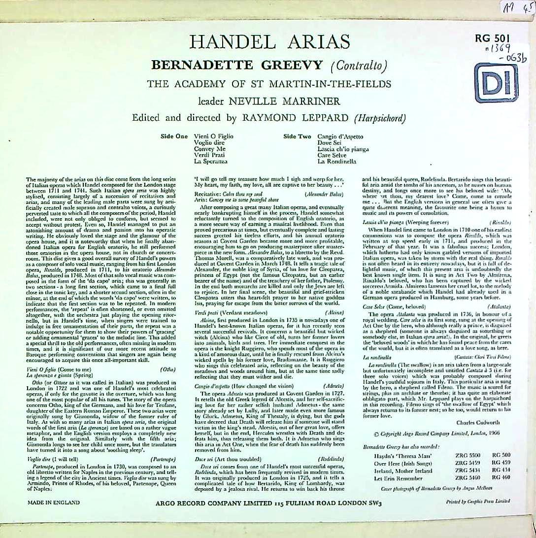 商品コード:1369-063b[ARGO] B.グリーヴィ(a)/ ヘンデル:オペラアリア集(全10曲)