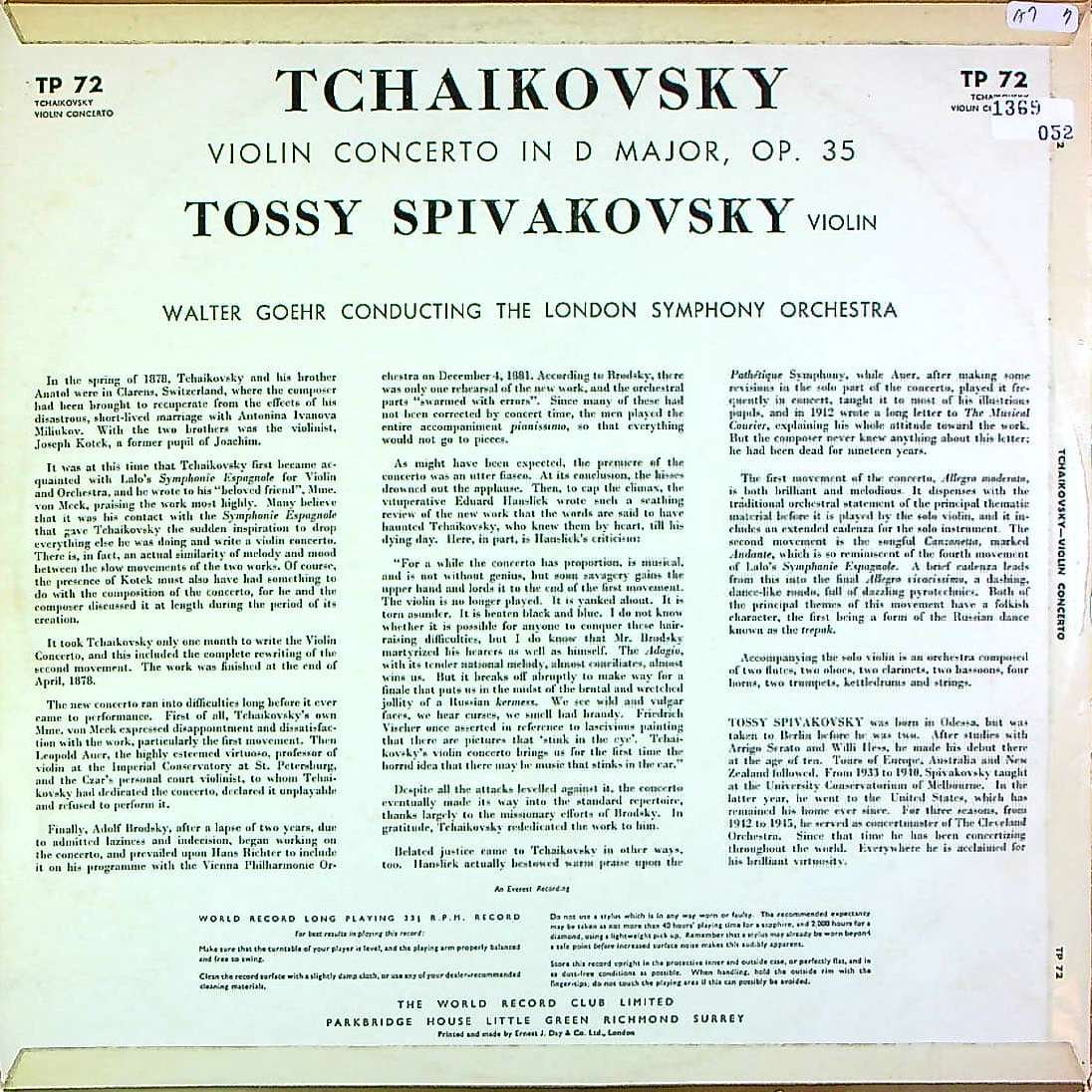 商品コード:1369-052[WRC] T.スピヴァコフスキー(vn)/ チャイコフスキー:Vn協奏曲, 懐かしい土地の思い出~「メロディ」