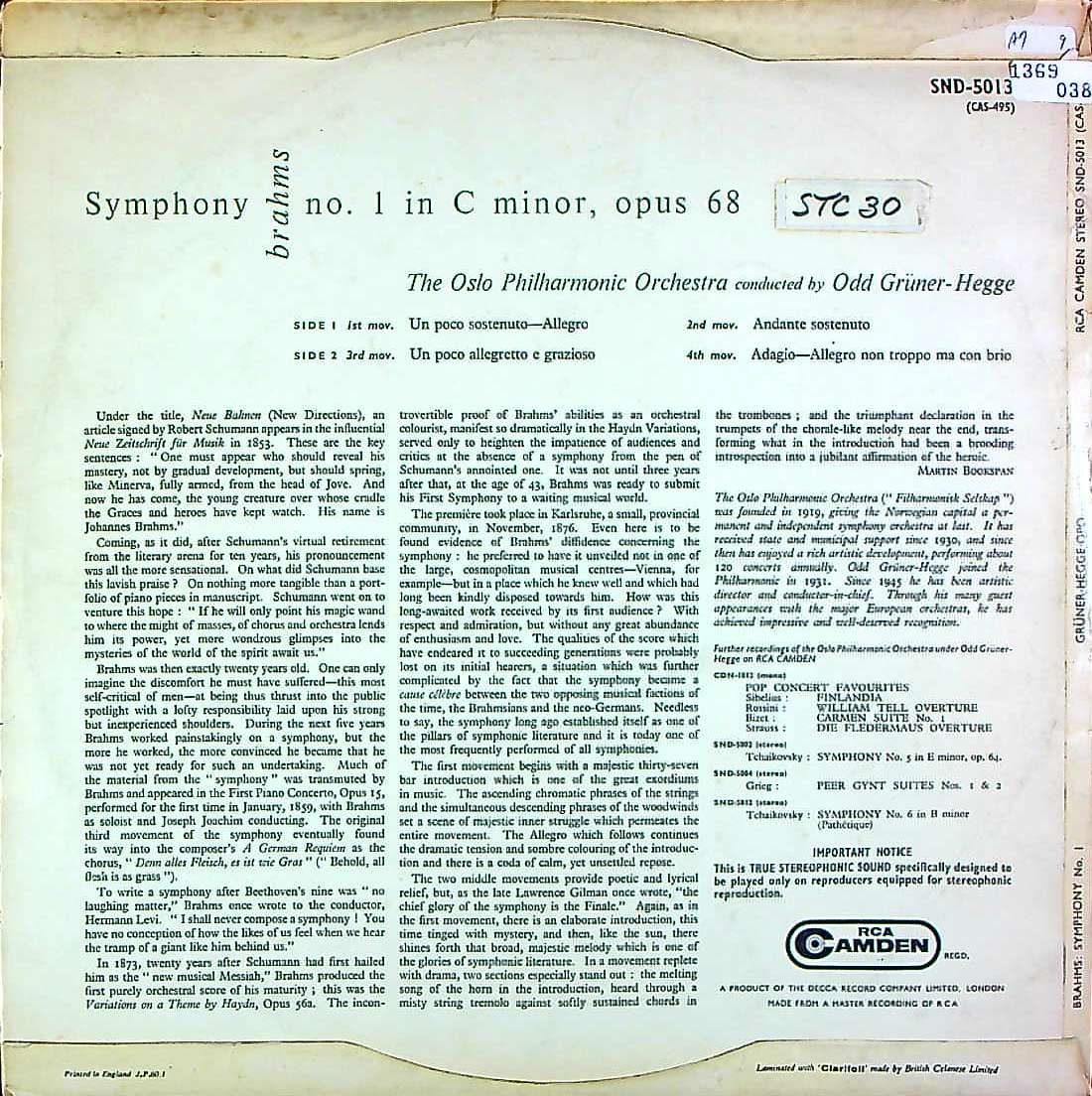 商品コード:1369-038[CAMDEN] O.グリュナー・ヘッゲ/ ブラームス:交響曲1番8