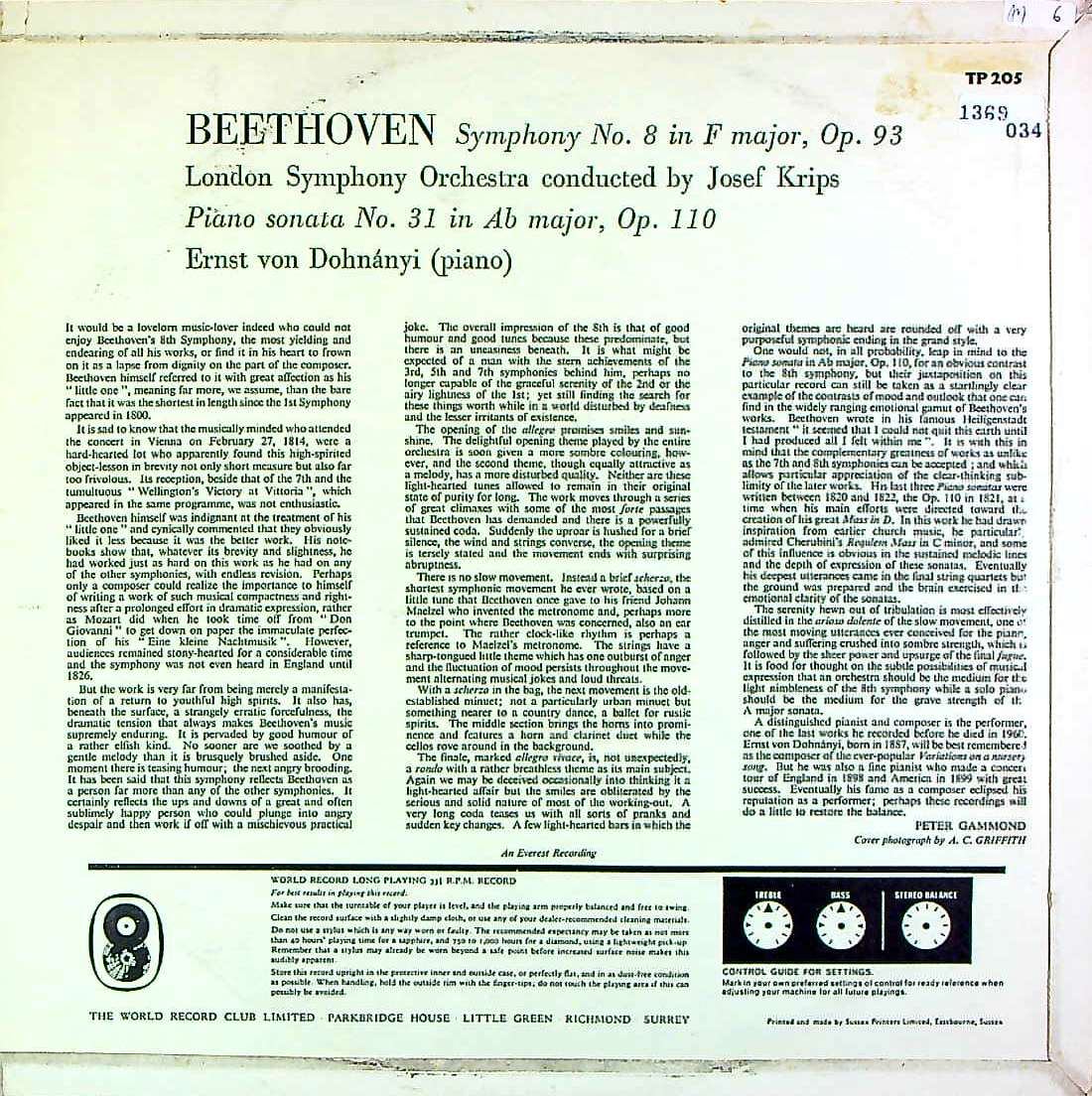 商品コード:1369-034[WRC] J.クリップス/E.v.ドホナーニ(pf)/ ベートーヴェン:交響曲3番「英雄」,Pf ソナタ31番