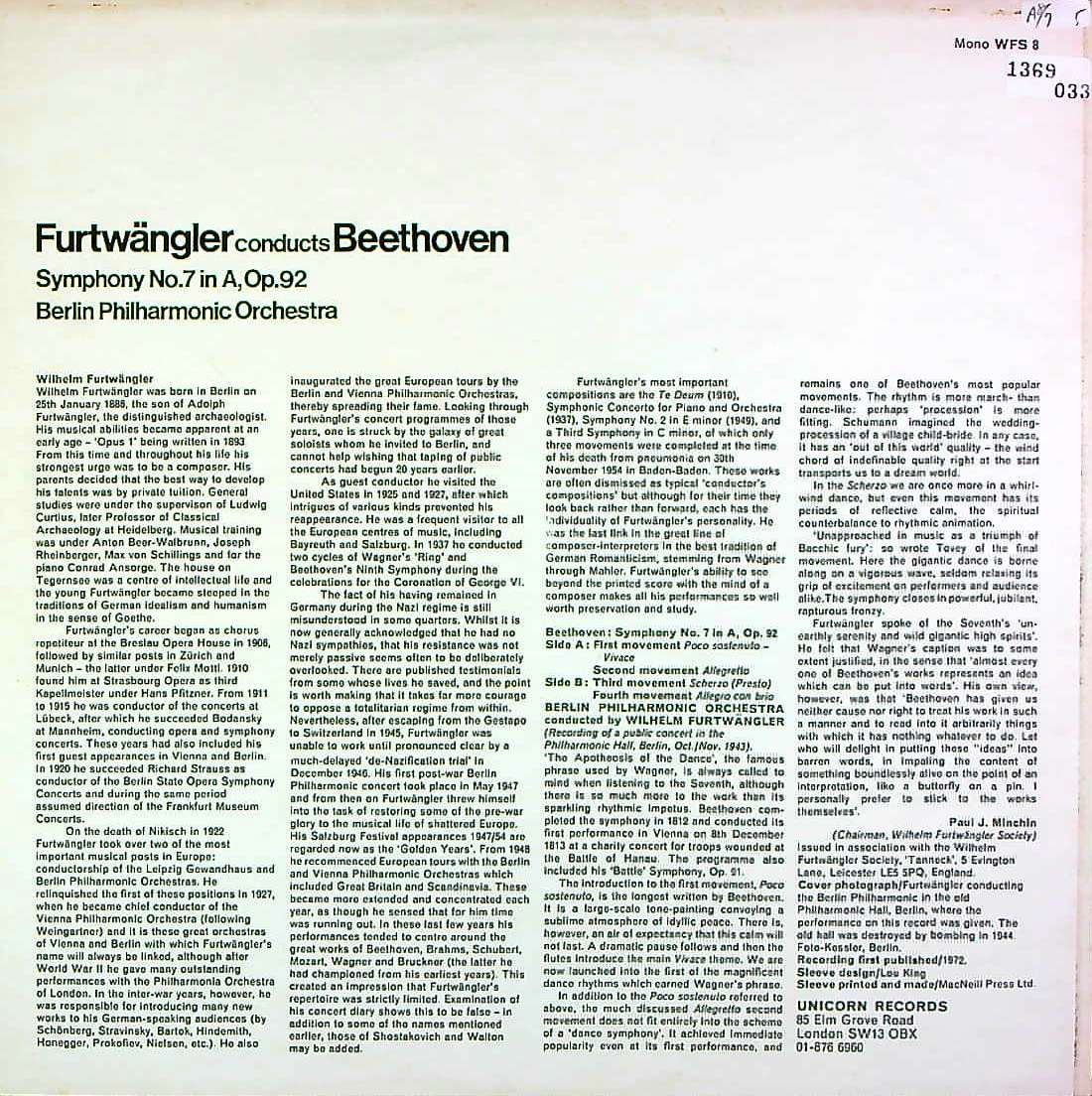 商品コード:1369-033[UNICORN] W.フルトヴェングラー/ ベートーヴェン:交響曲7番