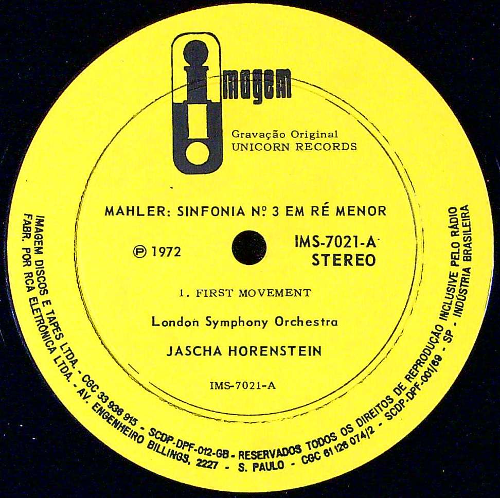 商品コード:1369-032b[Imagem] J.ホーレンシュタイン/アンブロジアン・シンガーズ 他/ マーラー:交響曲3番