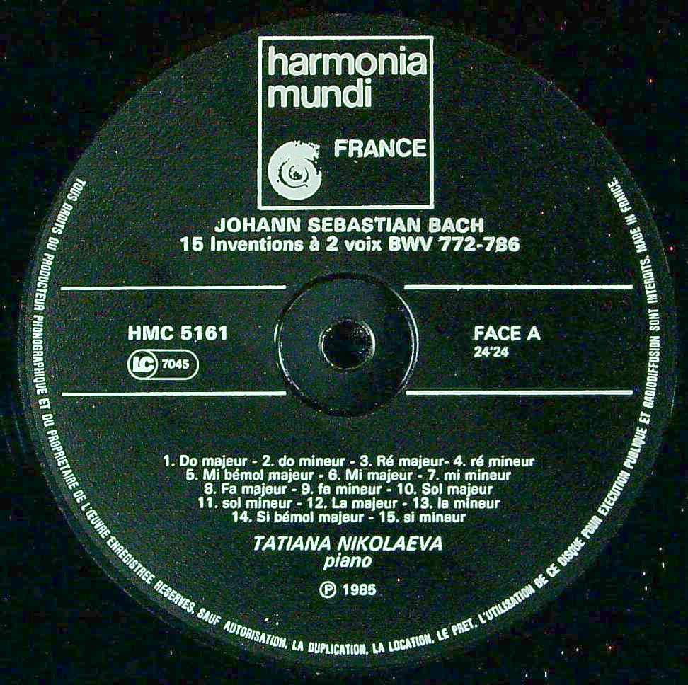 商品コード:1369-006b[HM] T.ニコラーエワ(pf) / バッハ:インヴェンションとシンフォニアB.772~801
