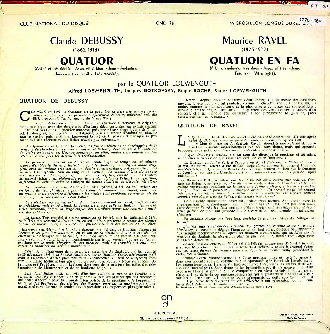 商品コード:1370-064[CLUB NATIONAL] レーヴェングートQt. / ドビュッシー:弦楽四重奏曲 , ラヴェル:弦楽四重奏曲