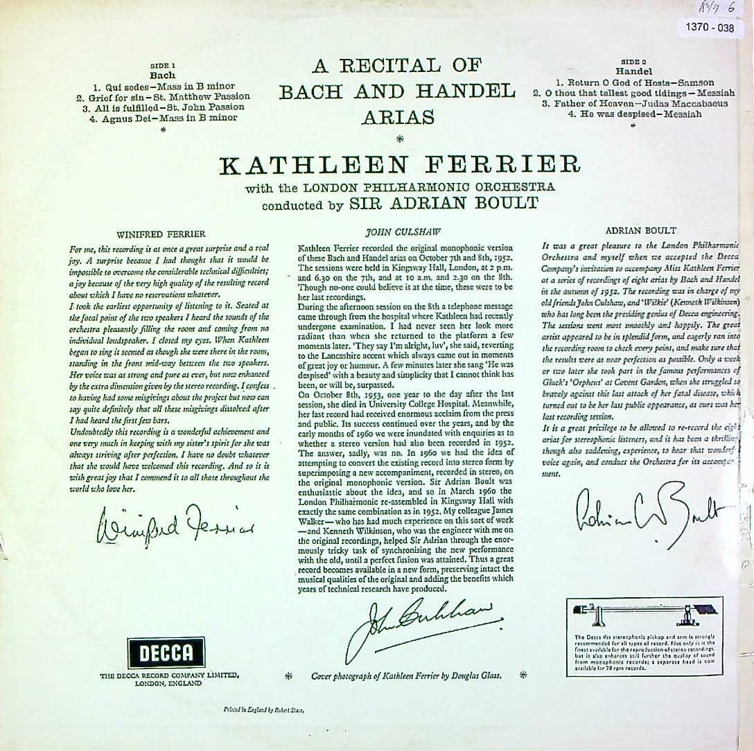 商品コード:1370-038[DECCA] K.フェリアー(ca)/ 「宗教曲アリア・リサイタル」バッハ:マタイ, ヨハネ, ロ短調ミサ, ヘンデル:サムソン 他