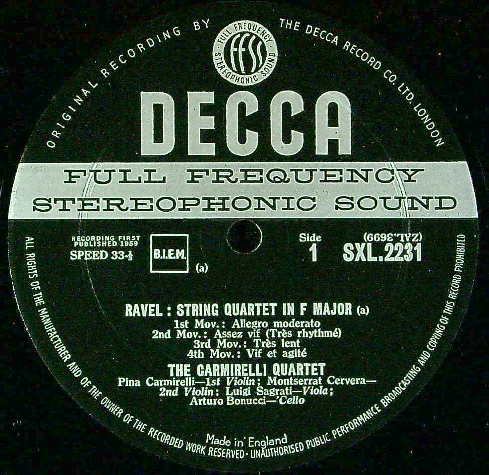 商品コード:1370-034[DECCA] カルミレッリQt. / ラヴェル:弦楽四重奏曲 ヘ長調, プロコフィエフ:弦楽四重奏曲2番Op.92