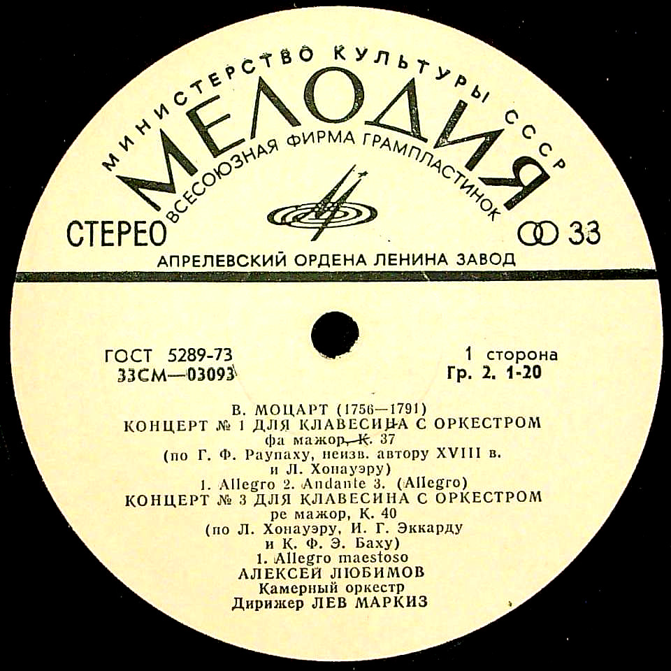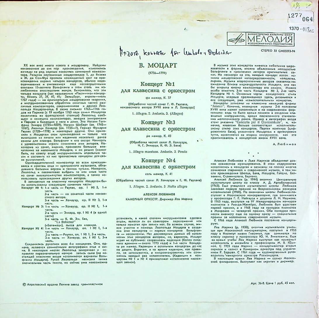 商品コード:1370-017nc[MELODIYA] A.リュビモフ(cemb)/ モーツァルト:Cemb協奏曲1, 3, 4番