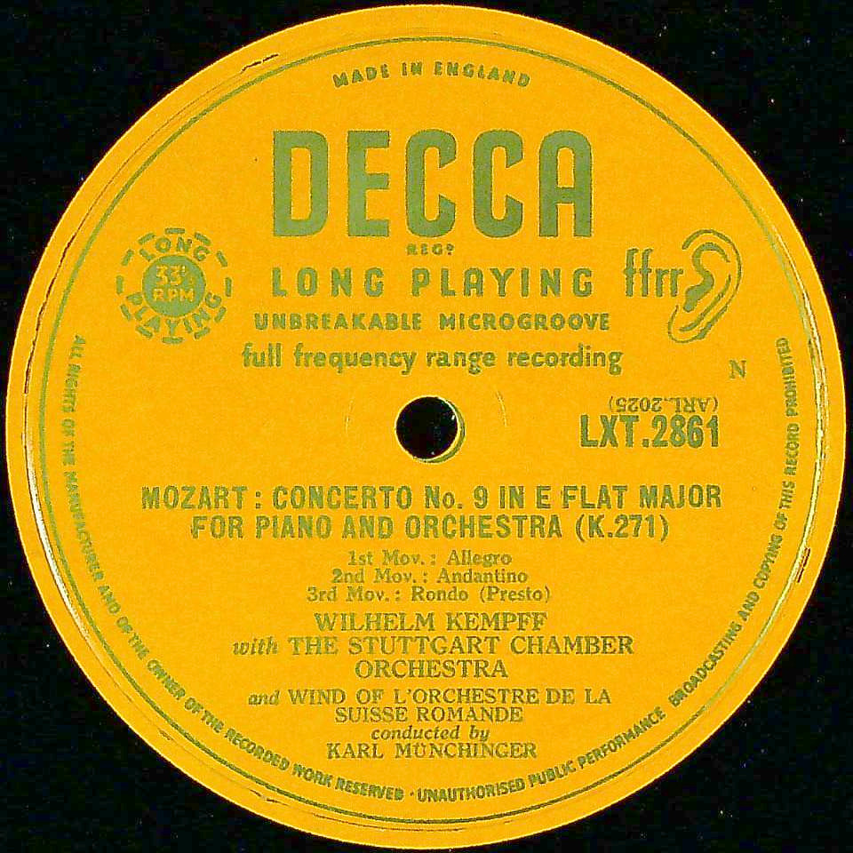 商品コード:1370-011[DECCA] W.ケンプ(pf)/ モーツァルト:Pf協奏曲9番K.271, Pf協奏曲15番K.450