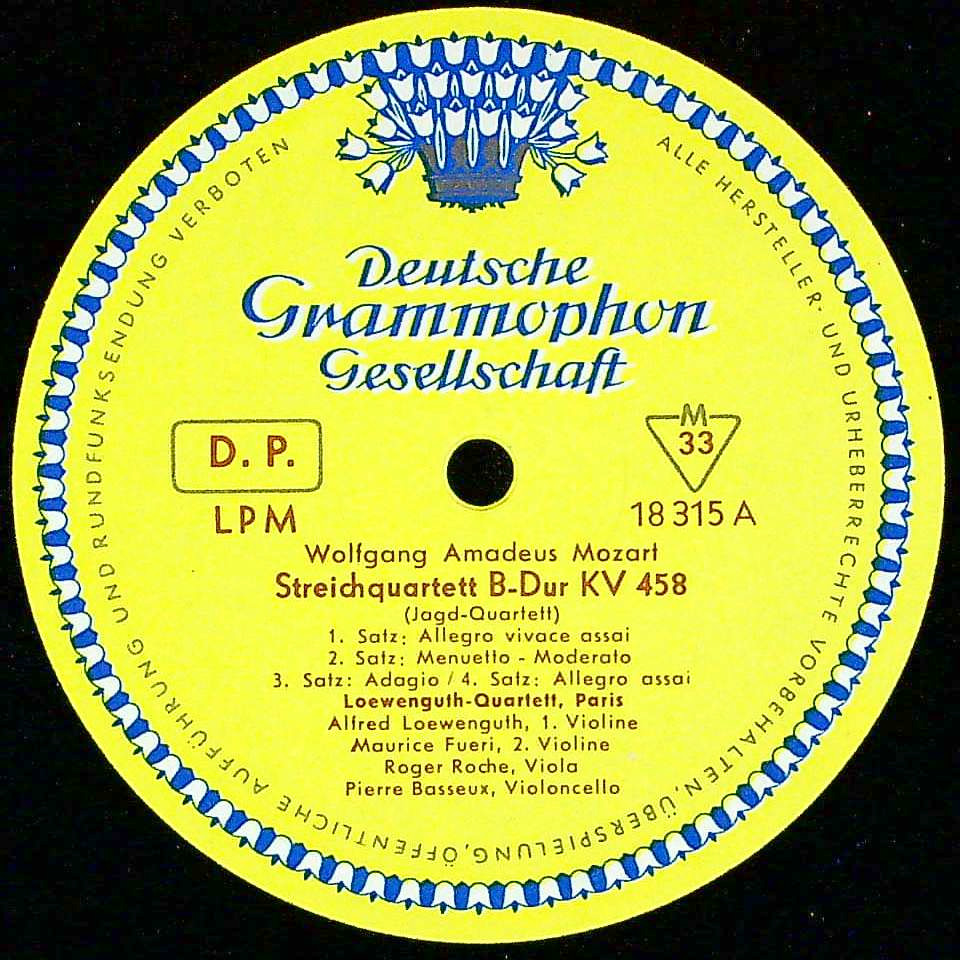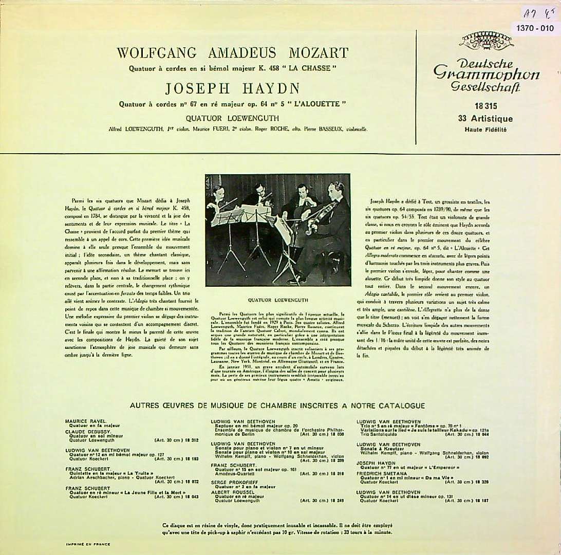 商品コード:1370-010[DGG] レーヴェングートQt. / モーツァルト:弦楽四重奏曲17番K.458「狩」, ハイドン:弦楽四重奏曲67番「ひばり」