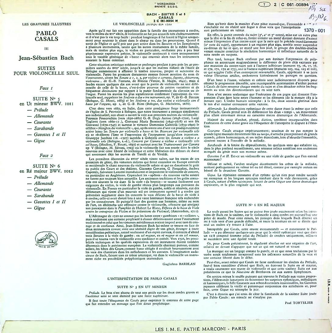 商品コード:1370-001[VSM] P.カザルス(vc) / バッハ:無伴奏Vc組曲(全6曲)B.1007-1012
