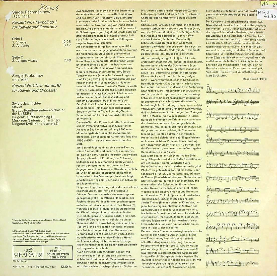 商品コード:REG-4135n[ETERNA] S.リヒテル(pf)/ ラフマニノフ:Pf協奏曲1番, プロコフィエフ:Pf協奏曲1番