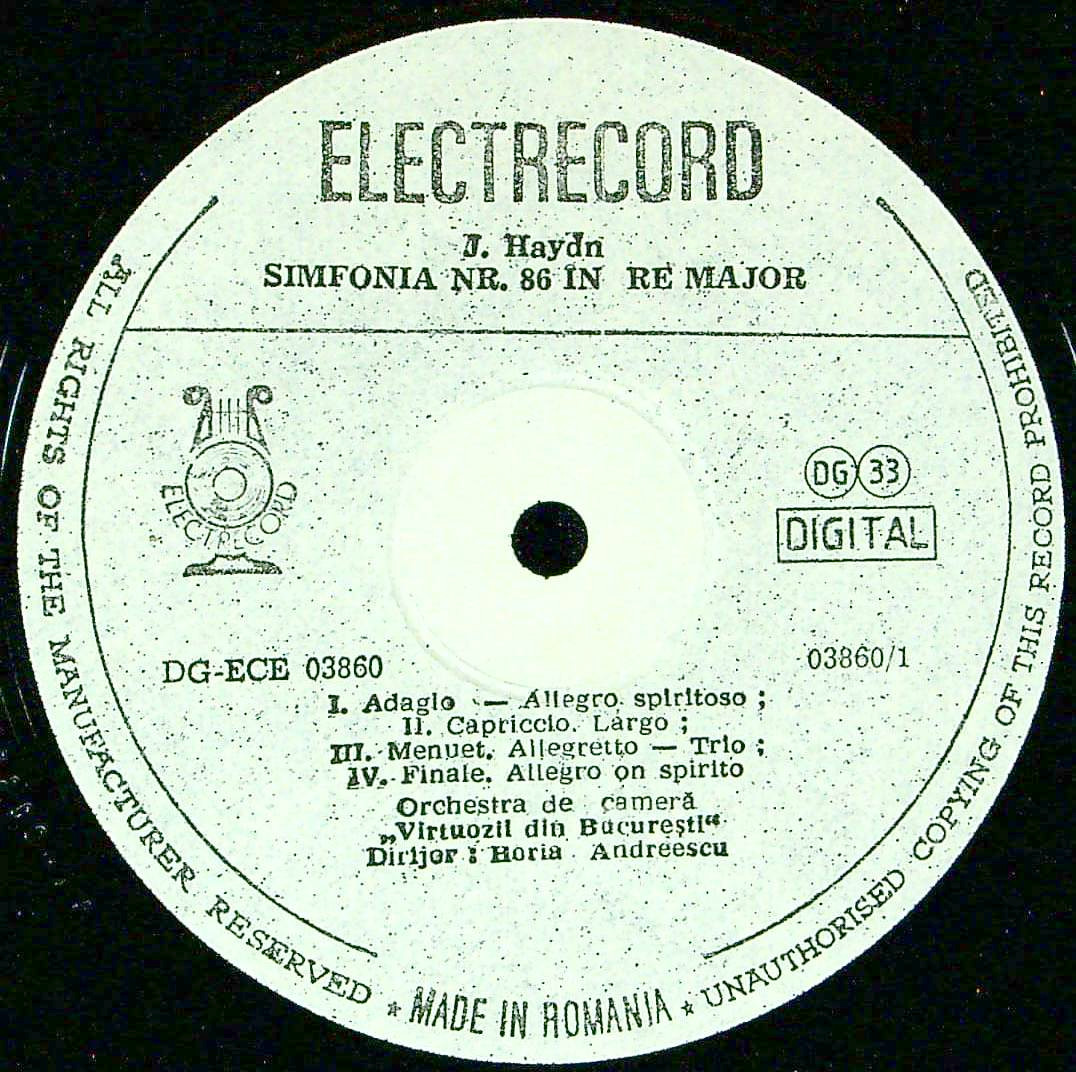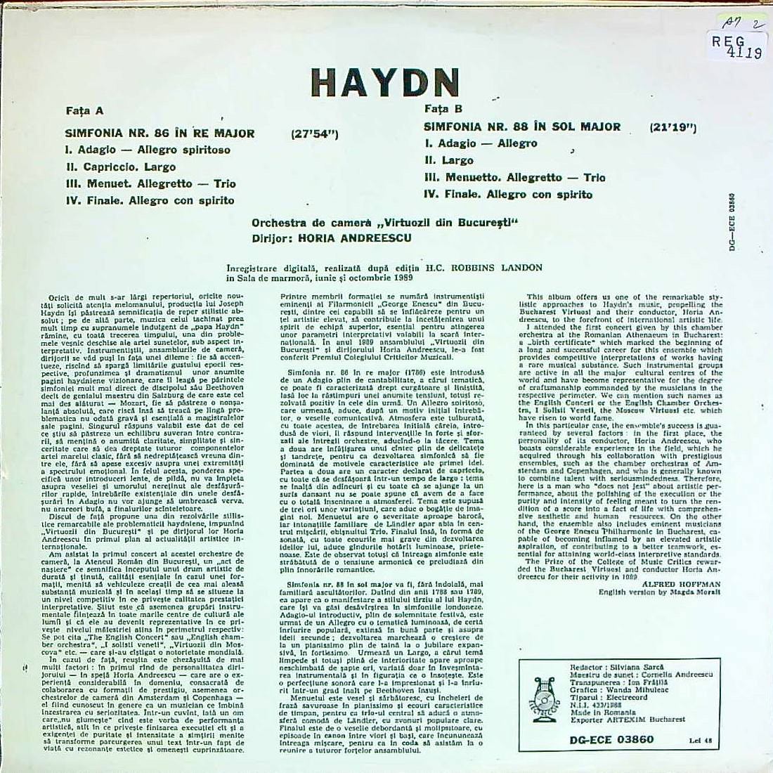 商品コード:REG-4119n[Electrecord] H.アンドレースク/ ハイドン:交響曲86番ニ長調, 88番ト長調
