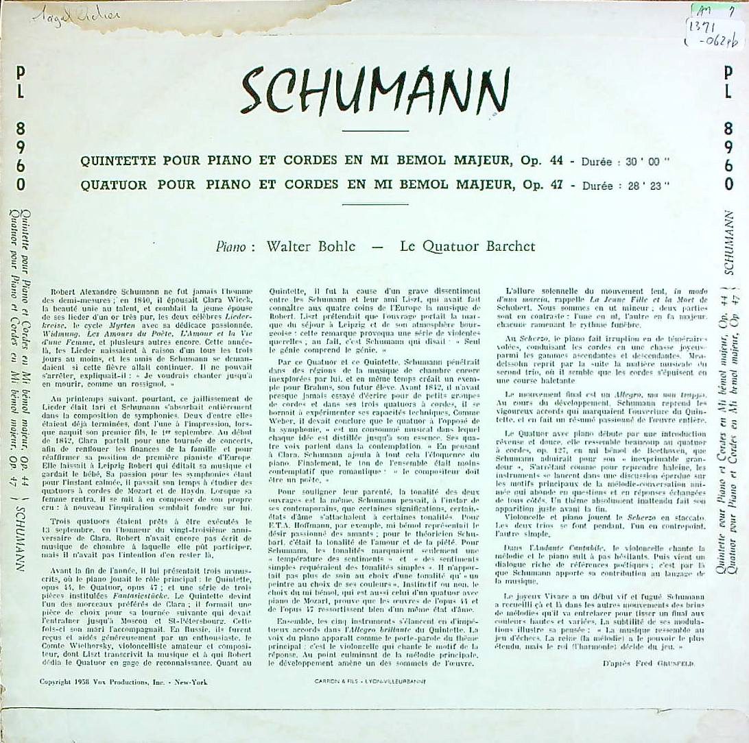商品コード:1371-062pb[VOX] W.ボーレ(pf) バルヒェットQt. / シューマン:Pf五重奏曲, Pf四重奏曲