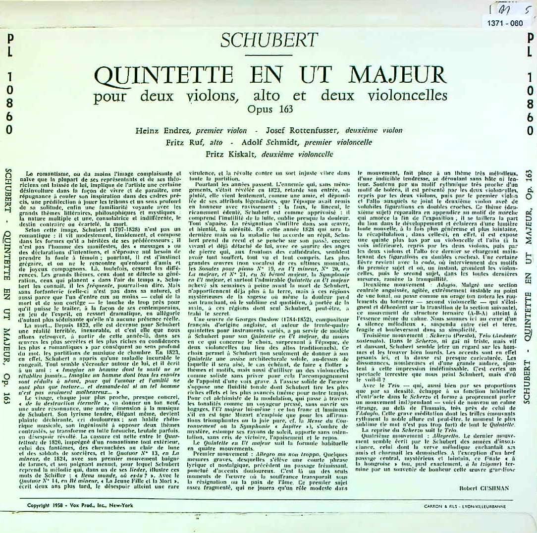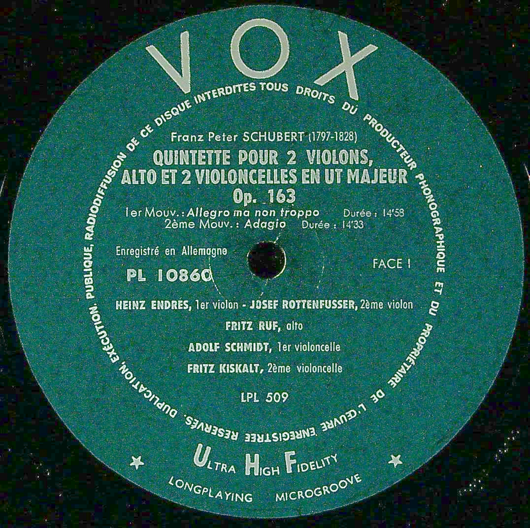 商品コード:1371-060[VOX] エンドレスQt. F.キスカルト(vc) / シューベルト:弦楽五重奏曲D.956